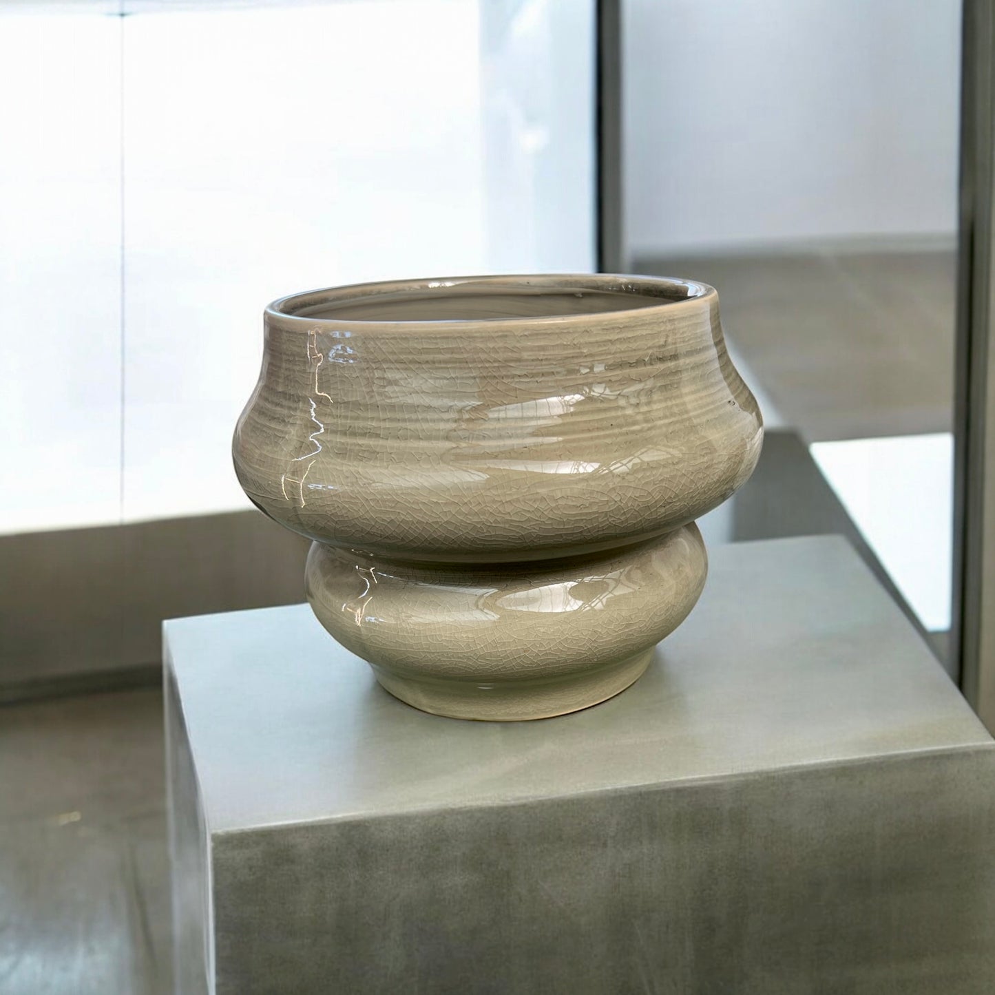 La finitura smaltata, disponibile in raffinati toni naturali, esalta la qualità artigianale e la lucentezza della superficie. Ideale per piante, fiori o come elemento decorativo unico.